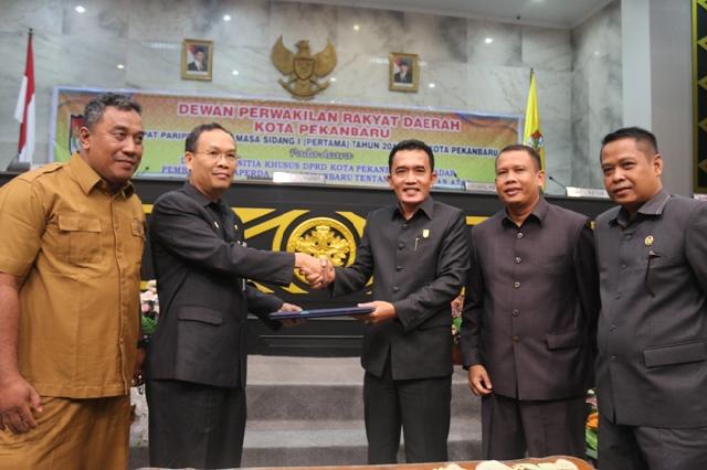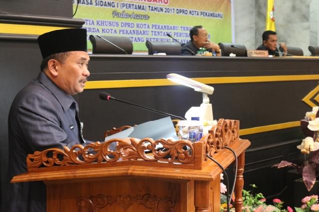 PEKANBARU - Dewan Perwakilan Rakyat Daerah (DPRD) Kota Pekanbaru, Senin (10/4/2017) menggelar paripurna ke-8 Masa sidang pertama terkait laporan panita khusus terhadap pembahasan Raperda DPRD Kota Pekanbaru tentang Perubahan Atas Perda Nomor 06 Tahun 2012 tentang Retribusi Pelayanan Pasar.